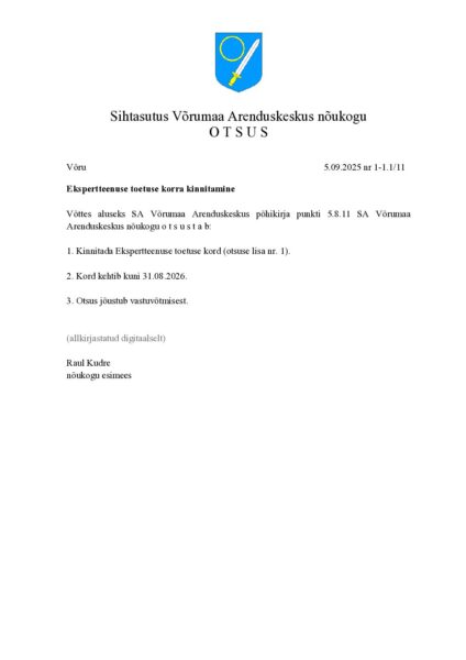 Arenduskeskuse nõukogu otsus nr 1-1.1_11 Ekspertteenuse korra kinnitamine