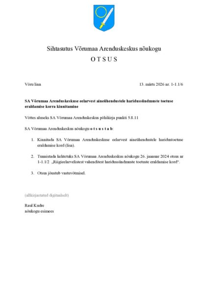 Arenduskeskuse nõukogu otsus nr 1-1.1_6 Haridussündmuste toetuse eraldamise kord_2026_eelnõu
