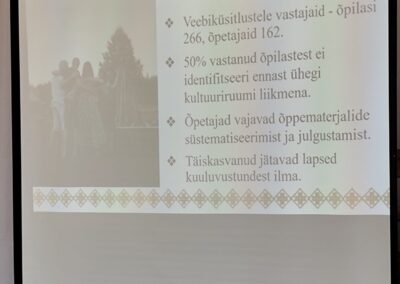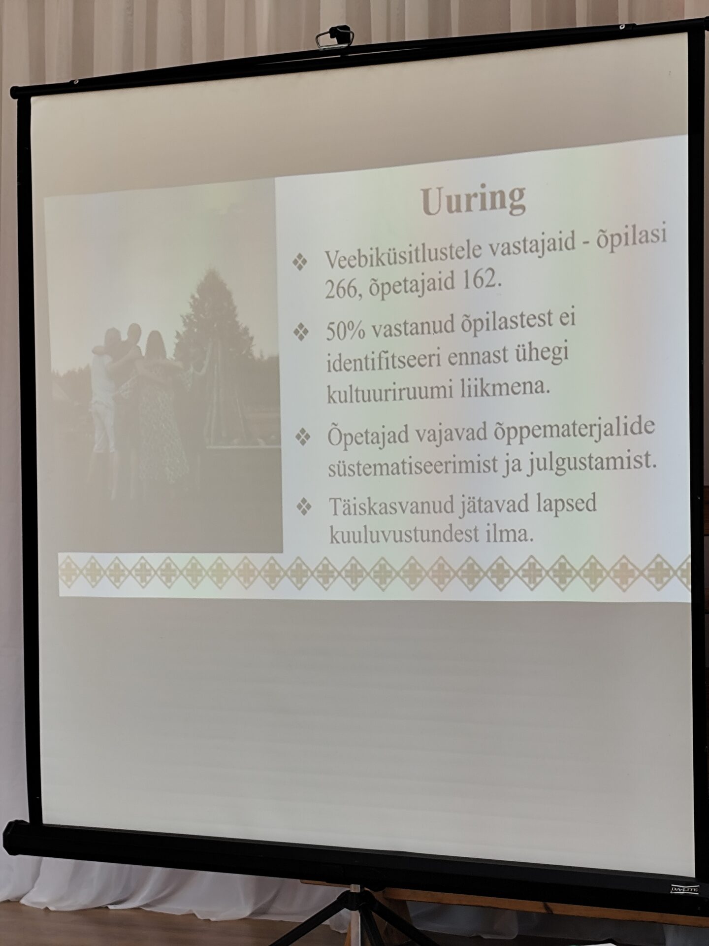 Seminaril tutvustas projektijuht Meel Valk seda, kuidas haridussüsteem saab aidata kaasa omakultuuri ja kohaliku eluviisi igapäevasele edasiandmisele. „Kui täna minna Võru maakonna lasteaeda või kooli, siis enamasti ei erine see väga palju Tartu või Tallinna omadest,“ tõdes Valk.