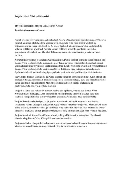 Projekti kokkuvõte – Helena Lõiv