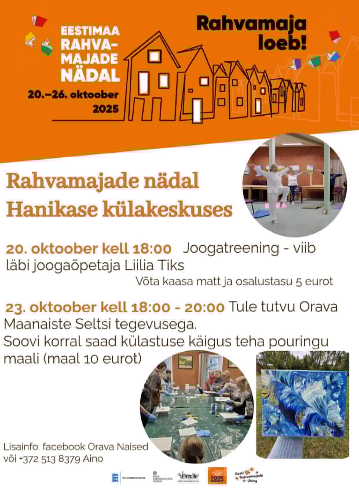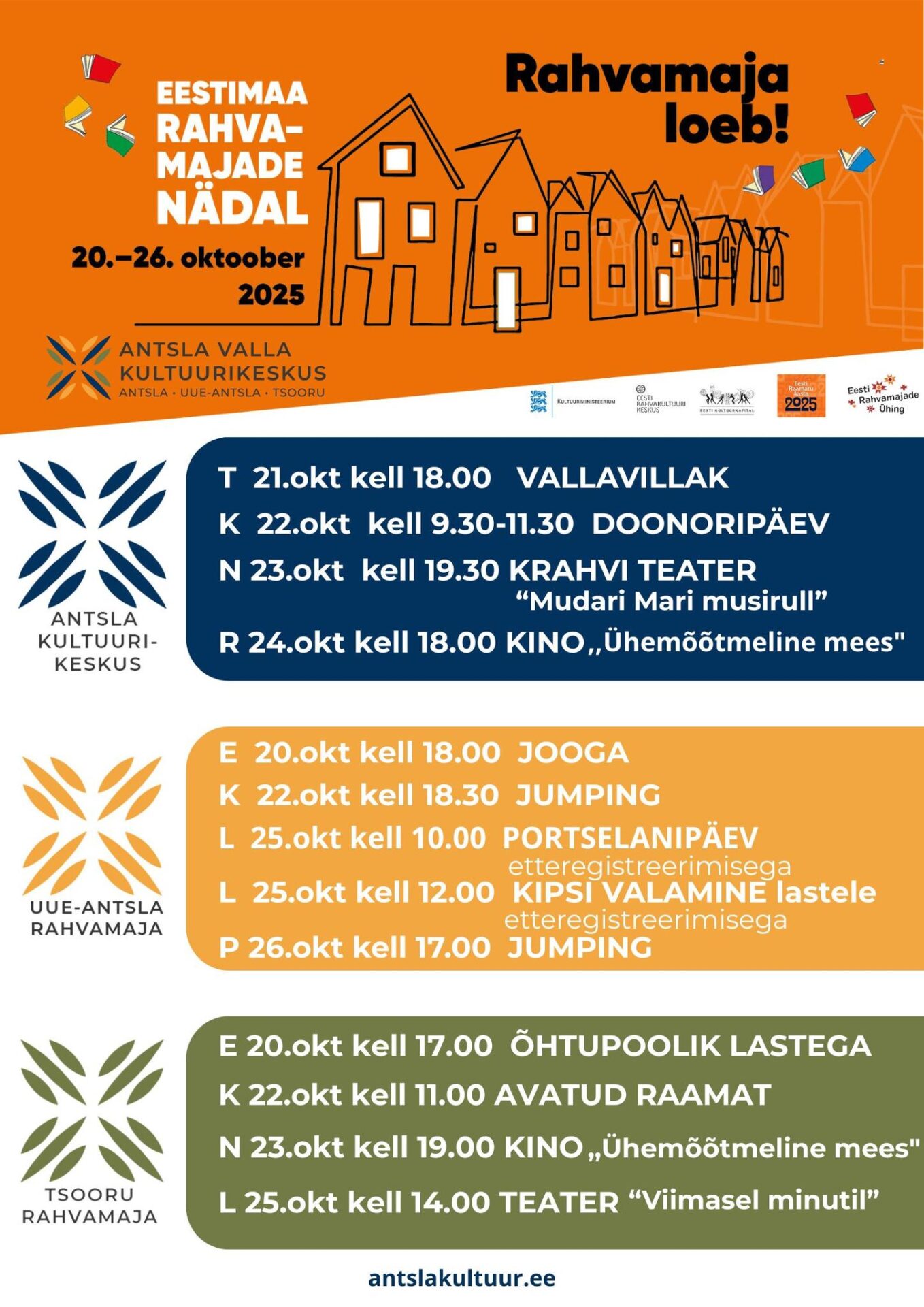 Täna, 20. oktoobril algab laiahaardeline Eestimaa rahvamajade nädal pealkirjaga „Rahvamaja loeb!“, kus avab oma uksed üle 100 rahvamaja 15 maakonnast.