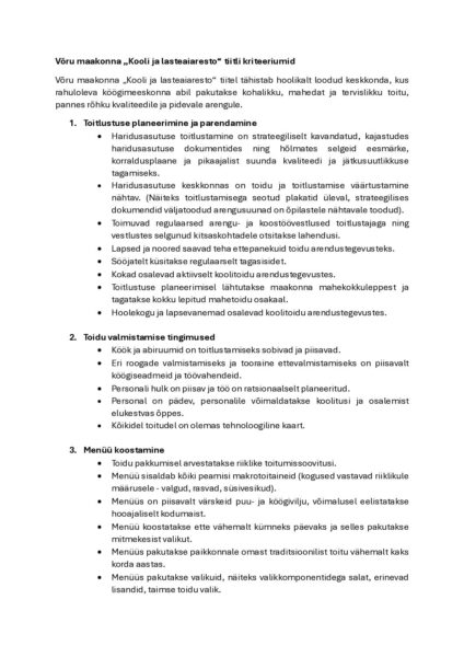 Võru maakonna kooli ja lasteaiaresto kriteeriumid