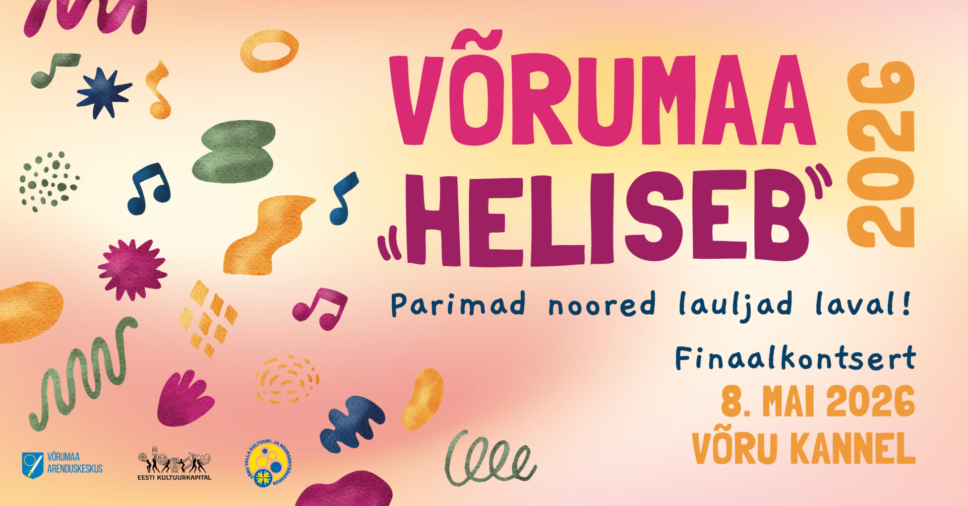 Võrumaa Arenduskeskus koostöös Võru valla kultuuri- ja noorsootöö keskuse ning muusika- ja lauluõpetajatega kutsub kõiki huvilisi Võru maakonna Laulukarusell „Võrumaa heliseb 2026“ finaalkontserdile, mis leiab aset 8. mail algusega kell 18.00 Võru kultuurimajas Kannel.